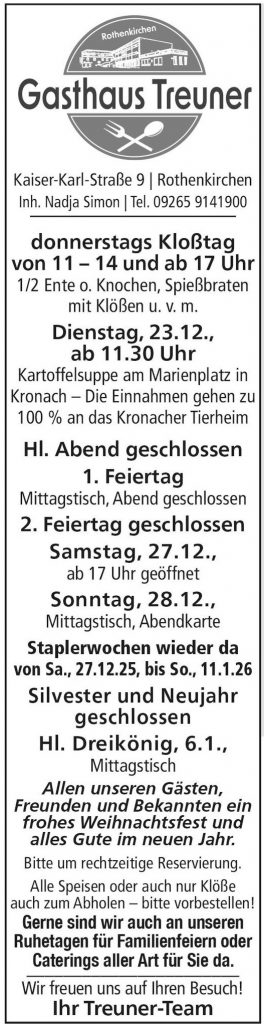 Im Februar 2024 eröffnete das Traditionsgasthaus in Rothenkirchen unter der Leitung von Nadja Simon wieder seine Pforten. Warme und illuminierte Räume laden zum Verweilen ein und ein Blick in die Speisekarte verspricht fränkisch- traditionelle und moderne Küche.